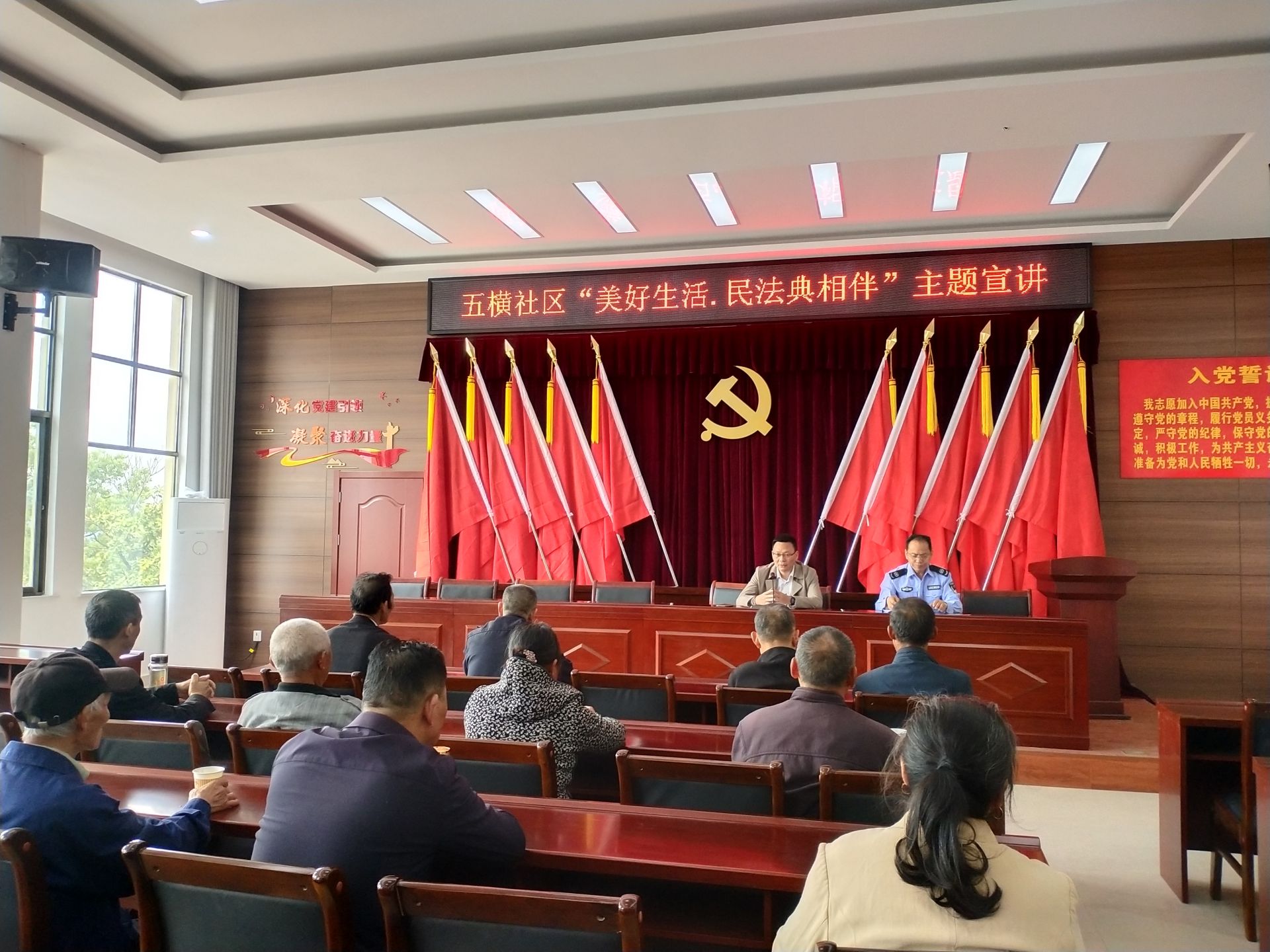 為了進一步提升社區群眾對《民法典》的知曉率和認知度,讓《民法典》走到群眾身邊,走進群眾心里,切實做好民法典學習宣傳貫徹工作,5月10日上午,五橫社區與五橫司法所、振風律師事務所聯合開展“美好生活·民法典相伴”主題宣講活動,向現場20余名黨員和群眾宣講與日常生活相關法律及案例知識。
