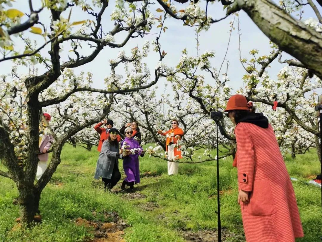 這里,是梨花盛開、淡白滿城的浪漫龍山。各地的游客在抖音、微信等多媒體平臺的宣傳下,紛至沓來。走進安慶市宜秀區大龍山鎮永林生態梨園,可以看見那成片潔白的梨花形影婆娑地在風中搖曳,婉約的姿態就如清風拂過美人面,撩人心弦。花瓣上晶瑩剔透的露珠兒一顆顆墜下,打濕土地,泥土夾雜著青草的芬芳,讓人沉醉。一陣風吹過,花瓣散落在人們發間,好似滿頭盡戴梨花簪。