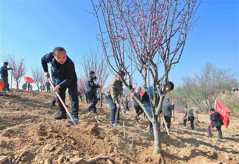 春風催新綠,植樹正當時。上午9時許,參加植樹活動的干部職工來到宜秀區大龍山鎮百華村龍湫池景區植樹點,大家分工協作、相互配合,一起扶苗正樹、揮鍬鏟土、踩實固苗、提桶澆水,在90畝的空地上栽植了紅梅、北美海棠、銀杏、櫻花等1000余株,安慶軍分區、團市委、市婦聯及有關高校、企業等營造“碳匯林”“八一林”“青年林”“巾幗林”“勞模林”“企業林”等紀念林6處。