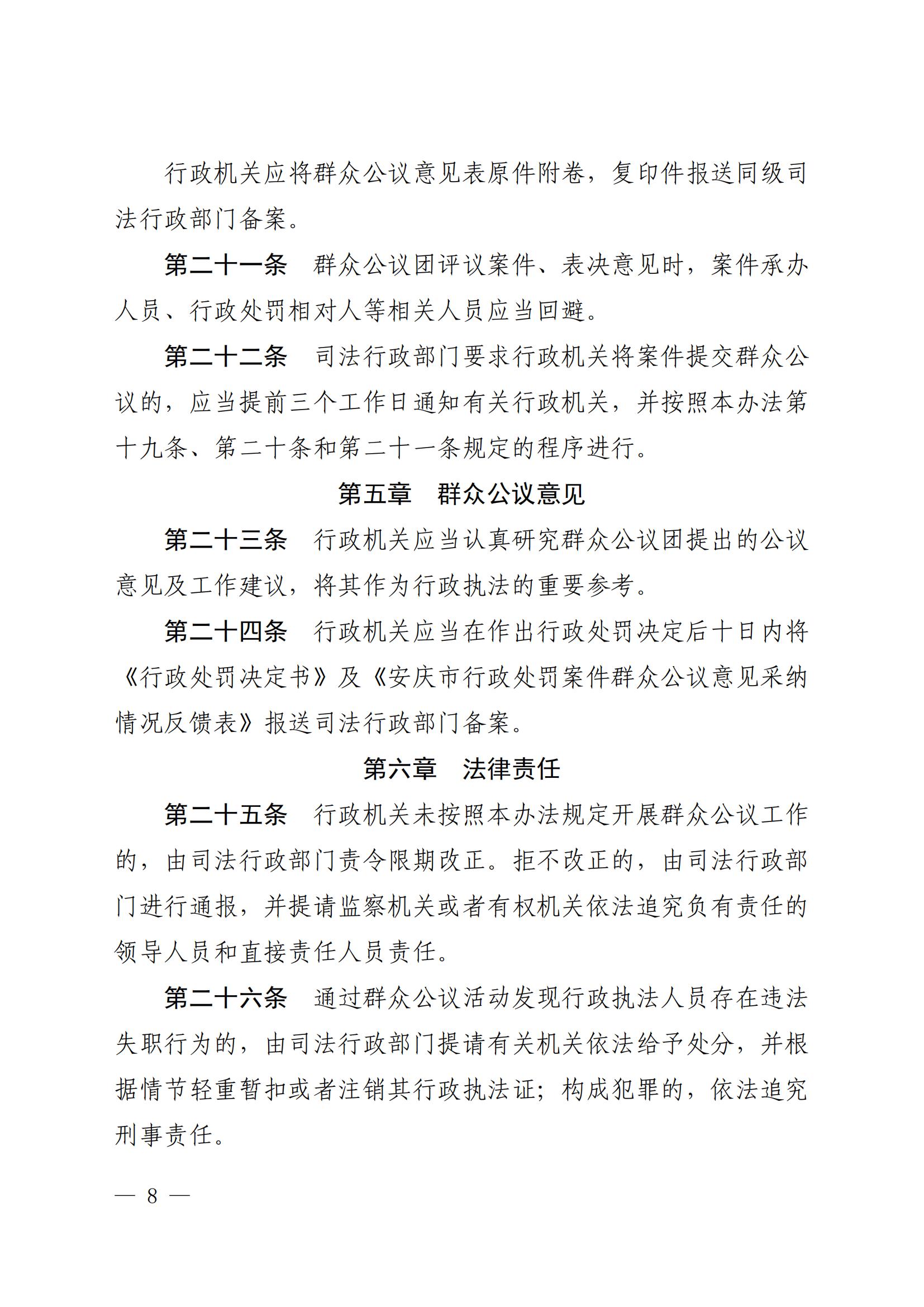 (三)本次群眾公議員招募工作由區(qū)司法局組織實施,聘期三年,一般不得超過兩屆。其他未盡事項請參照《安慶市行政處罰案件群眾公議辦法》(附件2)。