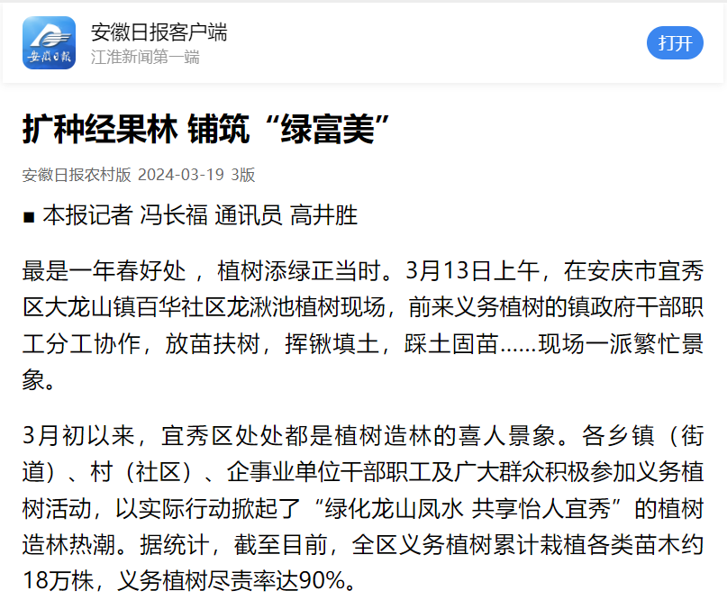 【安徽日?qǐng)?bào)】擴(kuò)種經(jīng)果林 鋪筑“綠富美”