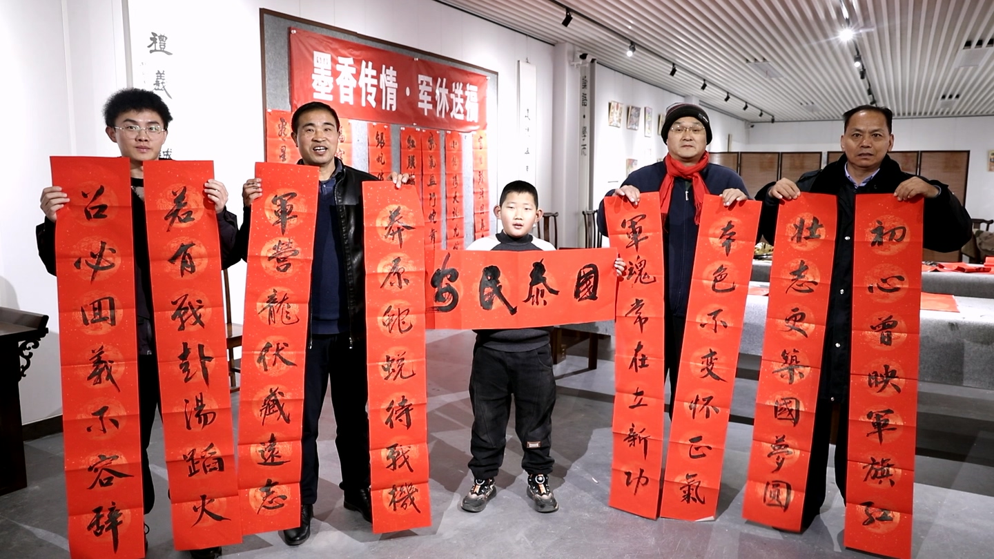 據了解,五橫鄉有農民書畫家100多人,其中退役軍人中書畫愛好者10多人,每逢春節,他們與當地農民書畫家一起,自備筆墨,書寫春聯將贈送給附近的退役軍人家庭及周邊鄉親。