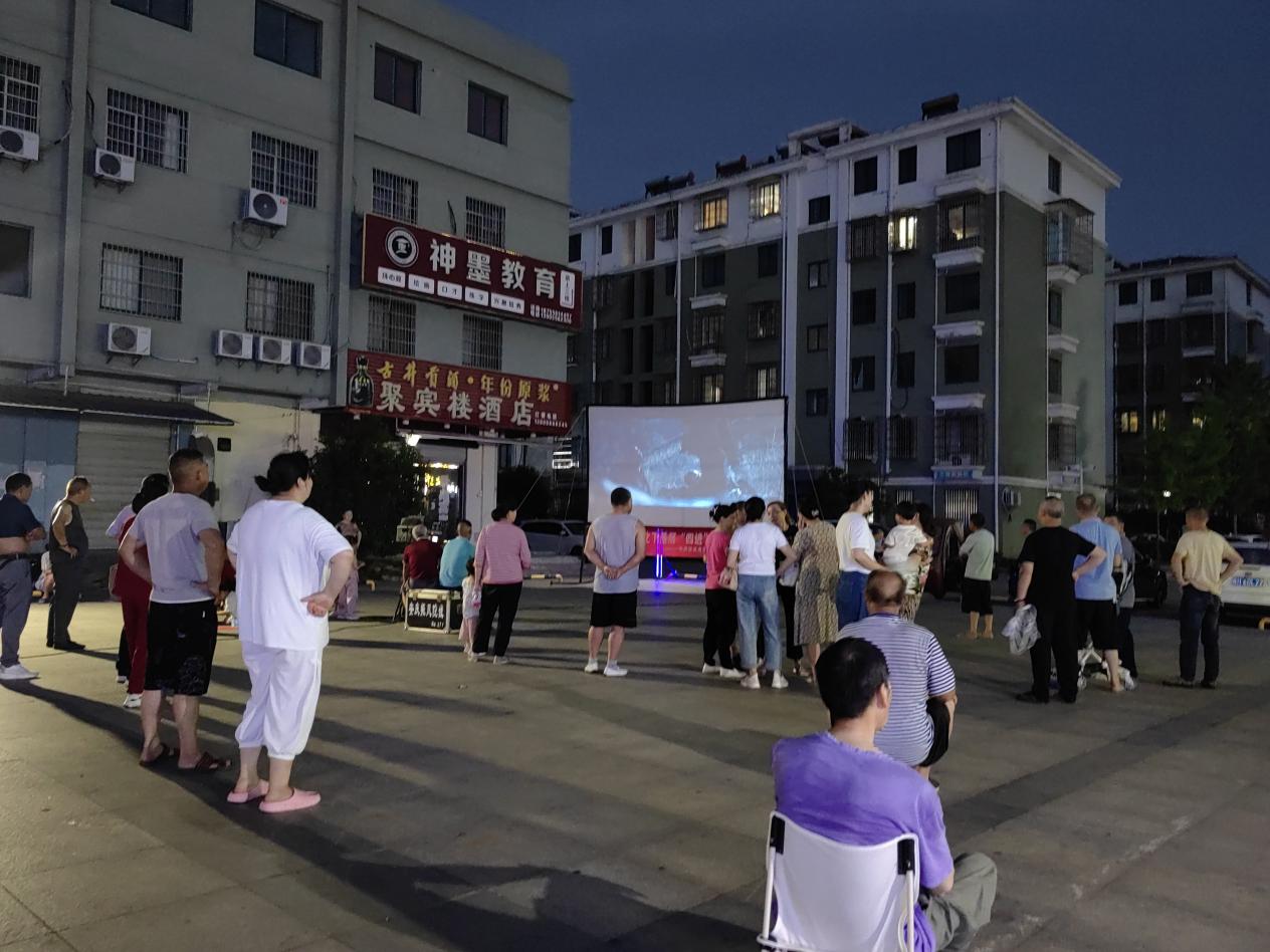5月21日傍晚,村民們早早來到社區南山園文化廣場等待播放紅色電影《獵殺:生死突圍》,展現抗日英雄的犧牲精神。雖然沒有高檔的影像設備,但大家仍看得津津有味,此次觀影活動,不僅是一次緬懷先烈的革命教育,更是一次深刻的愛國教育和精神洗禮。總鋪新時代文明實踐站全年圍繞傳統節日及各類主題活動,策劃形式多樣、內容豐富的惠民活動。2025年以來,總鋪社區新時代文明實踐站開展健康義診、公益活動、關愛留守兒童、電影放映,宣講傳統文化、講述身邊故事和“評選最美家庭”等主題活動10余場,傳播黨的聲音,弘揚文明新風,將暖心服務、惠民政策帶到群眾身邊。