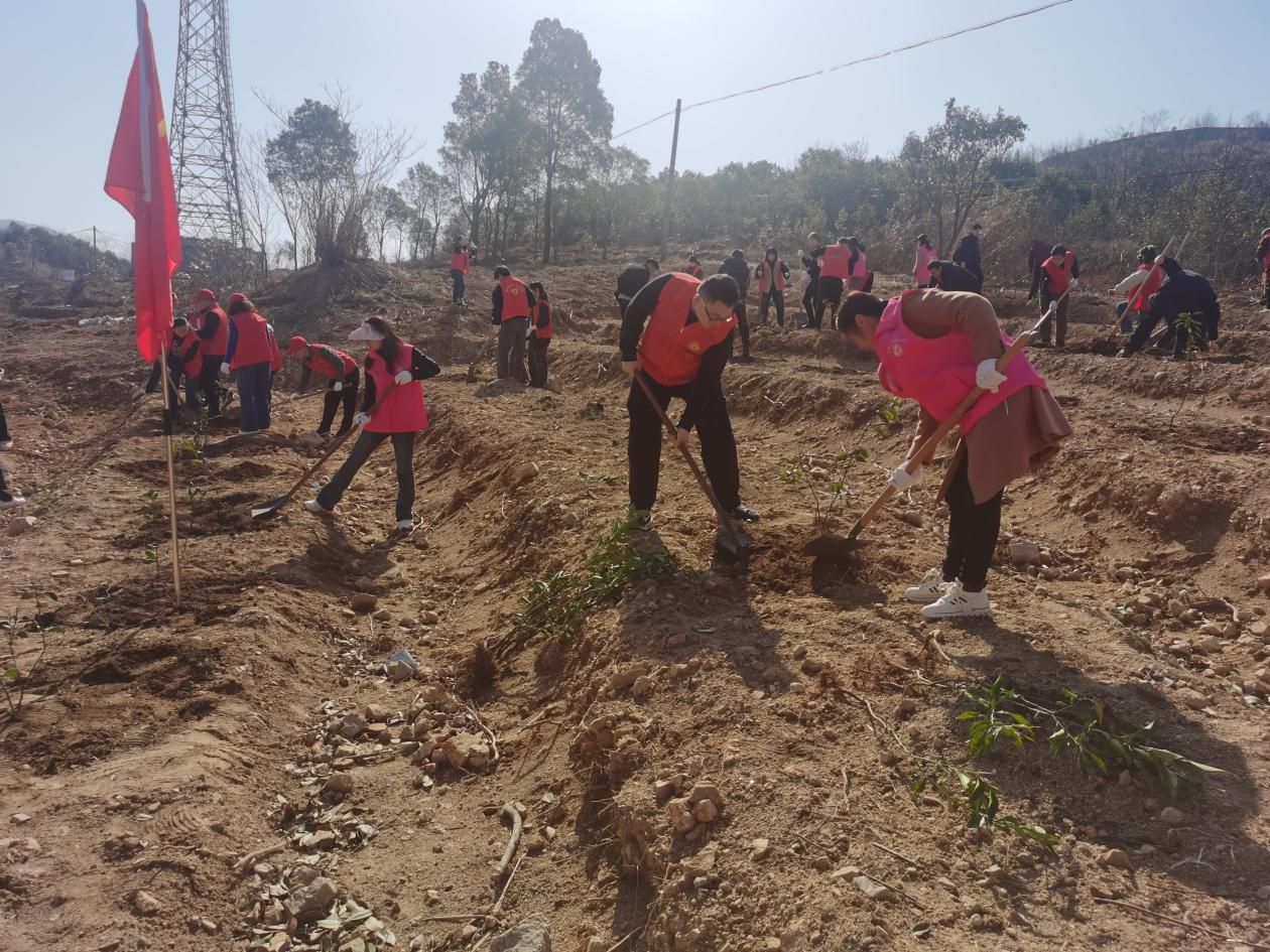 活動現場,黨旗迎風飄揚,一片熱火朝天的勞動景象。黨員干部和志愿者們分工合作、密切配合,揮鍬鏟土、扶植樹苗、培實新土、提苗壓實……各個環節銜接有序,配合默契,充分發揚了團結、互助、友愛的精神,用實際行動增添了一片綠色,在大家的共同努力下,一排排小樹苗迎風挺立,展現出勃勃生機。經過一上午的揮汗奮戰,望著筆直整齊的樹木,雖然疲憊不堪,但都露出欣慰的笑容。